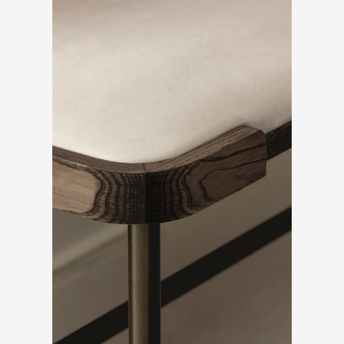 Банкетка с каркасом в отделке бронза. Сиденье из массива ясеня, чехол из ткани или кожи.