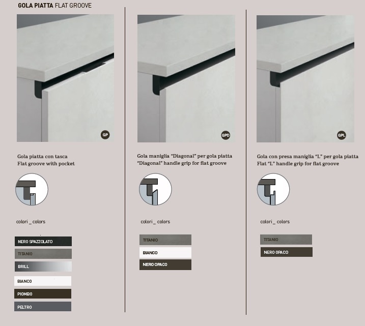 Ручка накладная или утопленный на толщину фасада металлический профиль Gola.
