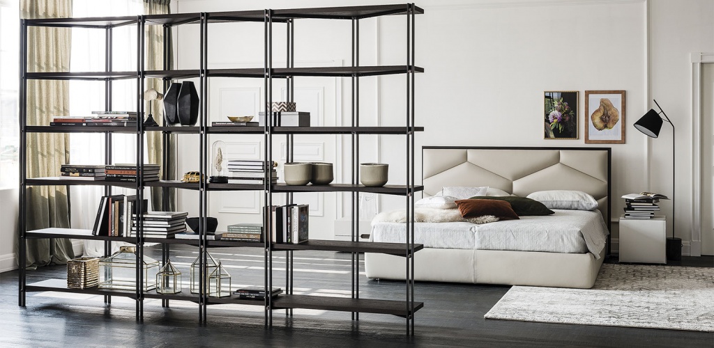 Детали из стали, окрашенной в сатинированную бронзу. Для расположения посередине помещения советуется заказ по меньшей мере двух модулей.