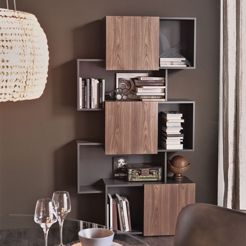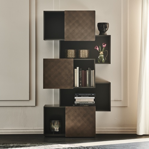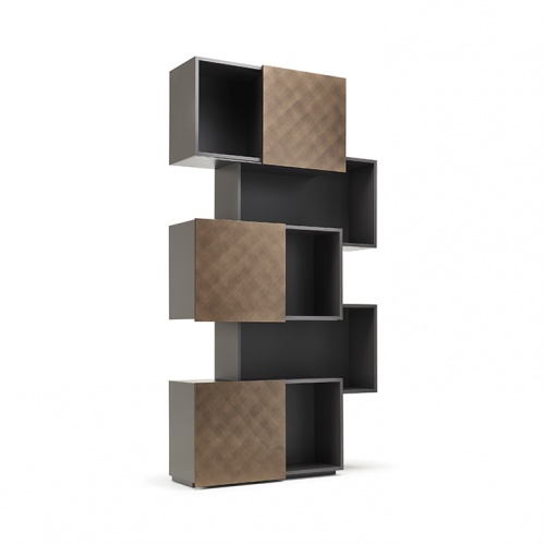 Библиотека со структурой из МДФ, окрашенного в гофрированный белый (GF71) или графитовый (GF69) цвет.