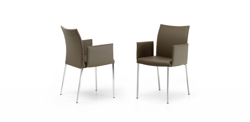 Стул с подлокотниками или без со структурой в в хромированной стали (08), или в черном хроме (06), окрашенной в черный (OP17), белый (OP71), графитовый (OP69) или титан (GFM11).